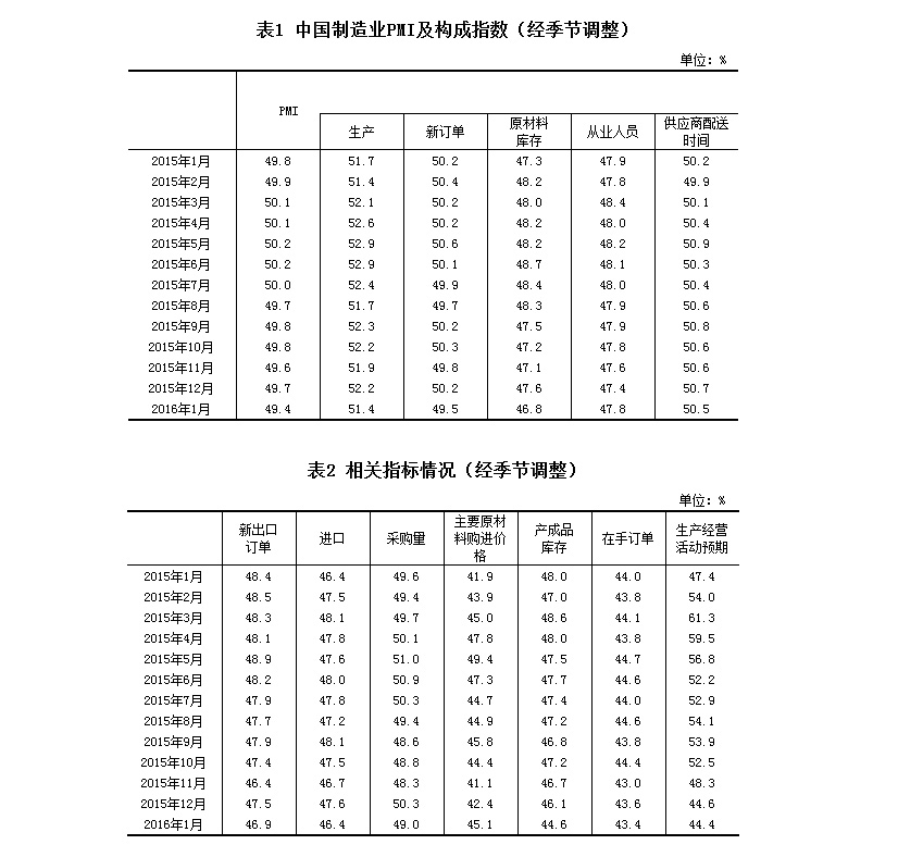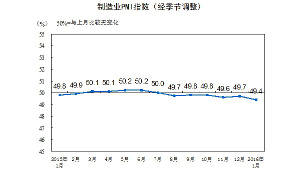 2016年1月中國制(zhì)造業采購經理(lǐ)指數(shù)為(wèi)49.4%